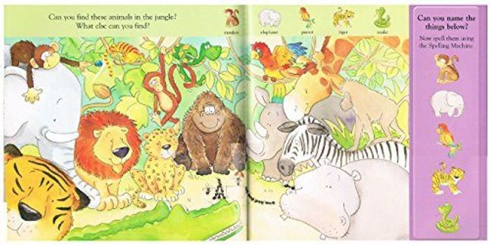 A spelling machine and book in one, this innovative format encourages and supports children as they learn to spell and start to read! A unique wheel mechanism enables kids to dial letters to spell words, while a simple flap hides the word until the child is finished dialing.