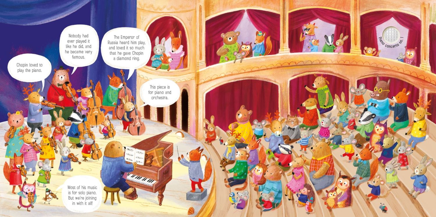 Each time you press a button in this book, you'll hear the Animal Orchestra play you one of Chopin's most beautiful tunes. They'll tell you a little bit about his life too. With heartwarming illustrations of the animal musicians and a sprinkling of fascinating facts about Chopin, this is a perfect introduction to one of the greatest composers of all time. And if you'd like to hear lots more of his music, there's a QR code on the back of the book.