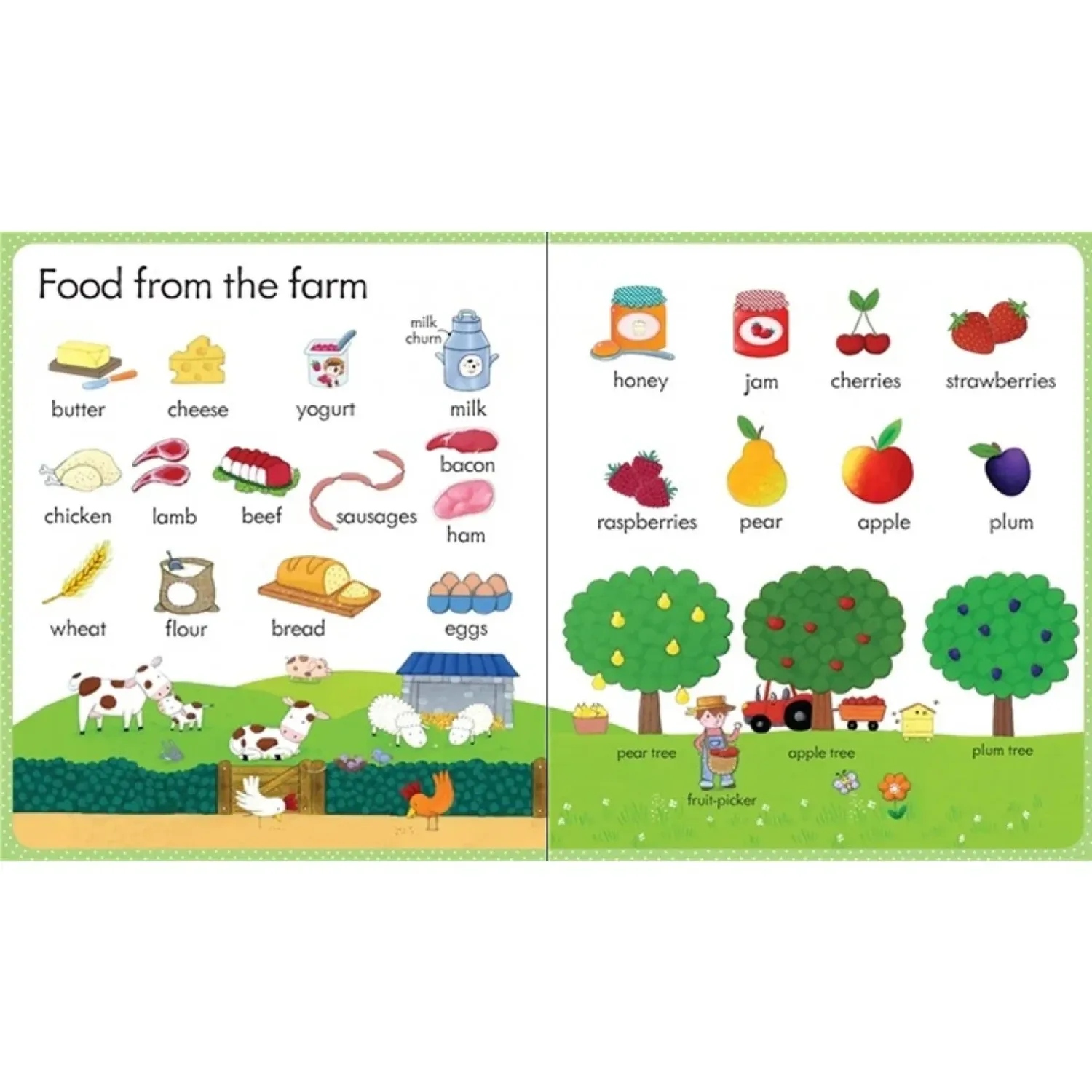 There are over 250 farm-related words for children to discover and learn in this delightfully illustrated word book. Words are arranged in themes such as farm animals, in the farmhouse, food from the farm and things that go. Each word is brought to life with a colourful illustration. With sturdy board pages designed to withstand being read and talked about time and time again.