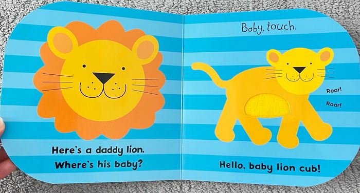 Look at the bright pictures of the mummy and daddy animals on the left-hand page, then help your baby to feel the touch-and-feel animal babies on the opposite page. There's also a mirror surprise on the last page for babies to see themselves!