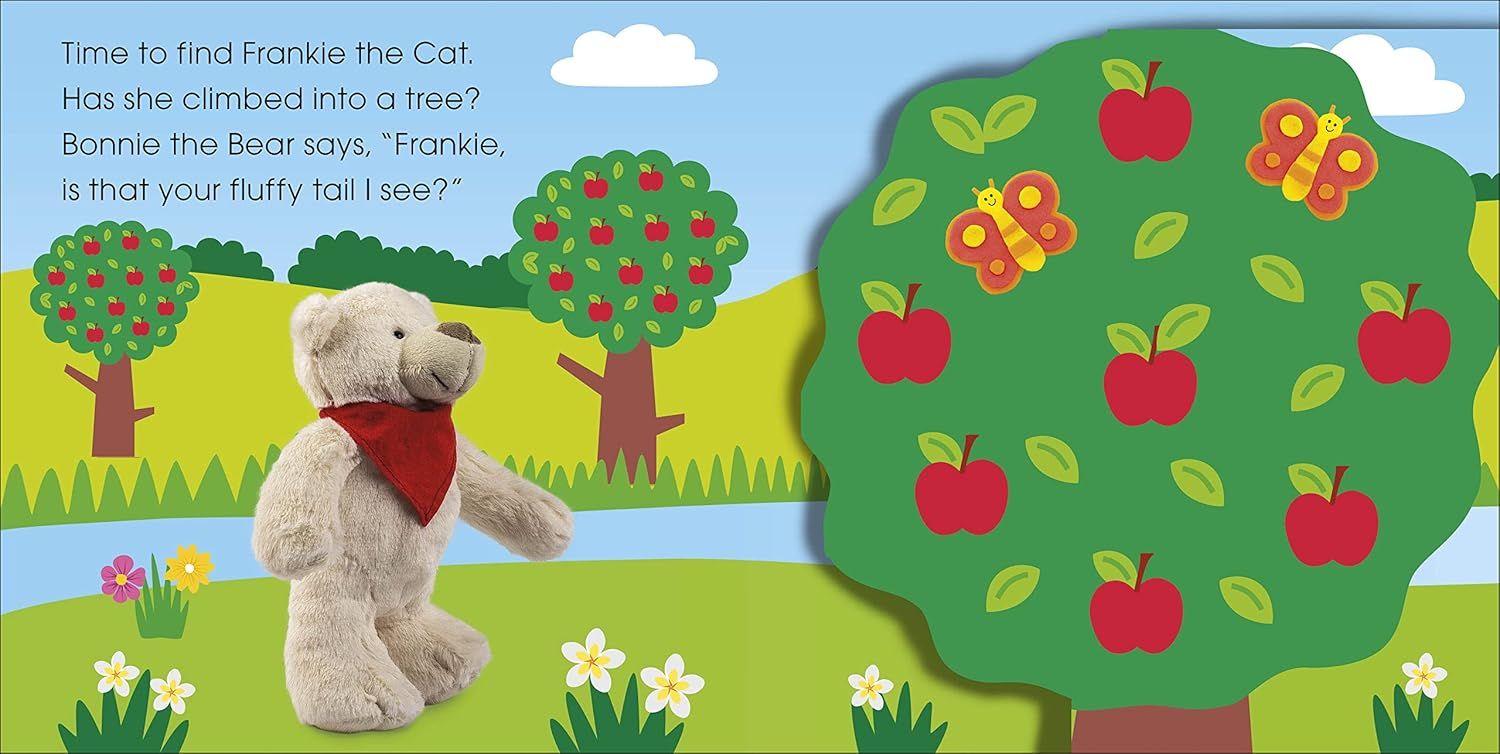 Bonnie the Bear is playing hide-and-seek with her cuddly pets. Where are they hiding? Babies and toddlers can lift big flaps and see four favourite pets pop up from the pages, playing peekaboo: Puppy Jojo is behind his kennel, Bunny Buttercup is in the vegetable patch, Frankie the Cat has climbed into a tree, and Hari the Hamster is in a flowerpot! Finally, Bonnie the Bear is hiding - she pops up with a special surprise for her four pets. What might it be? Lift the flap to find out!