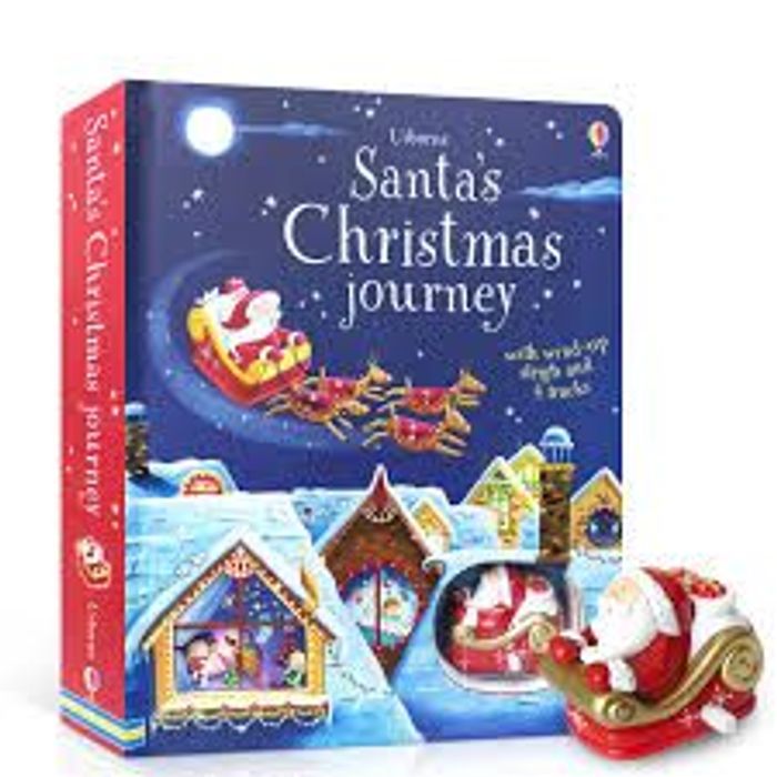 Wind up the sleigh and follow Santa as he flies around the frosty night sky delivering presents on Christmas Eve. The colourful scenes with tracks embedded in the pages show Santa leaving the elves' village, flying around a busy city, soaring over snowy mountains and landing on the rooftops to deliver presents to sleeping children.